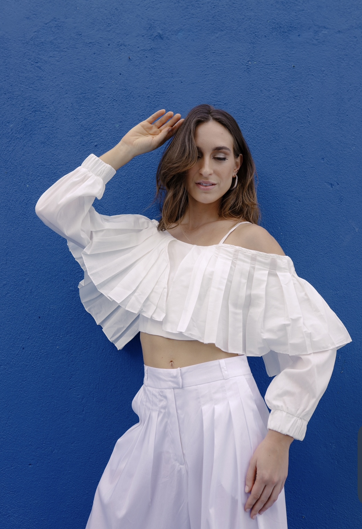 O cropped de babados traz uma modelagem ombro a ombro sofisticada e cheia de personalidade. As mangas assimétricas e um design estruturado equilibra modernidade e leveza. Uma peça versátil pra compor looks autênticos e marcantes.